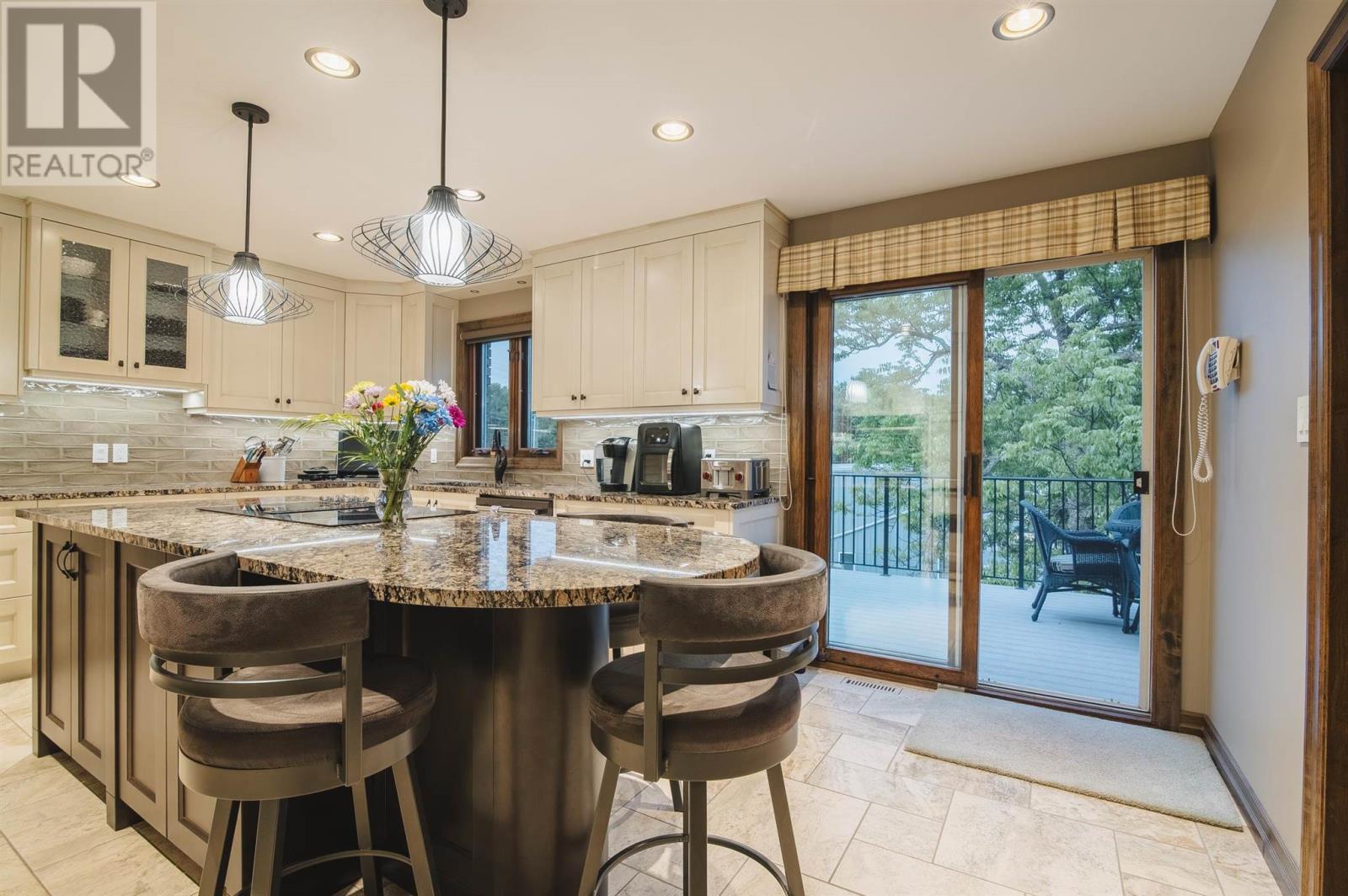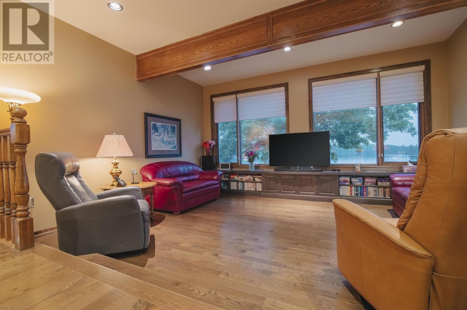 Executive Waterfront Estate on LOTW. Rarely does a residence of this distinction grace the market in such a coveted location-where luxury meets unparalleled access to Kenora’s finest amenities and the breathtaking expanse of LOTW-The 8th Wonder Of The World. The home offers a Sophisticated Design with Impeccable Craftsmanship. Spanning approx. 3,800sqft over 2 meticulously maintained Lvl, this home boasts 4+ Br, 4 Bth and a lush professionally landscaped grounds enhanced by an automated irrigation system. Every detail reflects thoughtful design and superior quality. Step through the arched entry into an oversized foyer where timeless elegance and refined finishes set the tone for the homes contemporary design. The heart of the home is the 2-tiered LR, where gleaming hardwood floors and a stately brick-faced gas FP create an inviting ambiance. The Lwr tier offers a cozy retreat for movie nights or soaking in panoramic southern views. The gourmet Ktn is a chef’s masterpiece, featuring heated tile flooring, a sprawling granite island and premium built-in appliances. Flowing seamlessly into the grand dining area, this space is designed for memorable feasts with loved ones. Tucked privately off the LR, the primary suite is a haven of tranquility. The spacious Br opens to a private waterside balcony, while the spa-inspired ensuite pampers with a jetted tub, shower and an expansive walk-in closet. The walk-out Lwr Lvl is an entertainer’s dream, featuring a vast rec rm, office, 3 additional Br, 2 full Bth and a den easily convertible to a 5th Br. The potential for a sep suite is also possible. The expansive 3-stall garage is ready for all your vehicles and toys. Step outside to your own slice of paradise-where a pristine sand beach is framed to the north by a Century Old Stone Wall layed by craftsman from years gone by. A solid dock and storage shed stand ready for endless adventures. This is more than a home-it’s a legacy property in one of LOTW’s most enviable l (id:4069)