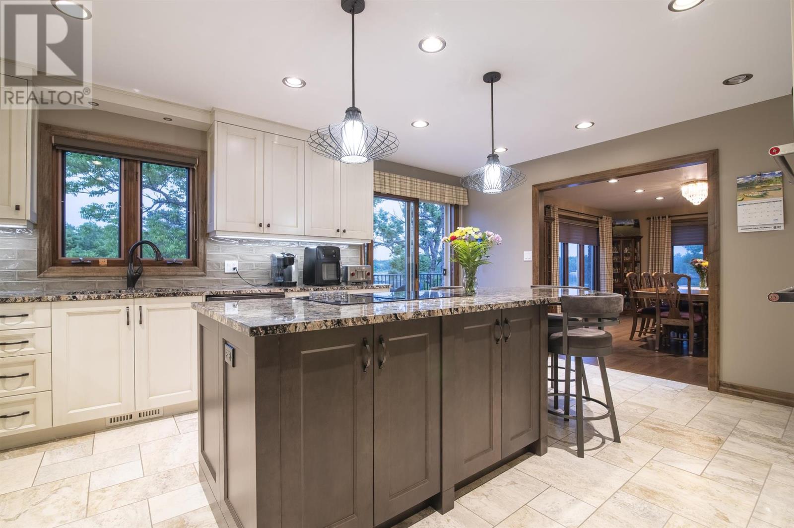 Executive Waterfront Estate on LOTW. Rarely does a residence of this distinction grace the market in such a coveted location-where luxury meets unparalleled access to Kenora’s finest amenities and the breathtaking expanse of LOTW-The 8th Wonder Of The World. The home offers a Sophisticated Design with Impeccable Craftsmanship. Spanning approx. 3,800sqft over 2 meticulously maintained Lvl, this home boasts 4+ Br, 4 Bth and a lush professionally landscaped grounds enhanced by an automated irrigation system. Every detail reflects thoughtful design and superior quality. Step through the arched entry into an oversized foyer where timeless elegance and refined finishes set the tone for the homes contemporary design. The heart of the home is the 2-tiered LR, where gleaming hardwood floors and a stately brick-faced gas FP create an inviting ambiance. The Lwr tier offers a cozy retreat for movie nights or soaking in panoramic southern views. The gourmet Ktn is a chef’s masterpiece, featuring heated tile flooring, a sprawling granite island and premium built-in appliances. Flowing seamlessly into the grand dining area, this space is designed for memorable feasts with loved ones. Tucked privately off the LR, the primary suite is a haven of tranquility. The spacious Br opens to a private waterside balcony, while the spa-inspired ensuite pampers with a jetted tub, shower and an expansive walk-in closet. The walk-out Lwr Lvl is an entertainer’s dream, featuring a vast rec rm, office, 3 additional Br, 2 full Bth and a den easily convertible to a 5th Br. The potential for a sep suite is also possible. The expansive 3-stall garage is ready for all your vehicles and toys. Step outside to your own slice of paradise-where a pristine sand beach is framed to the north by a Century Old Stone Wall layed by craftsman from years gone by. A solid dock and storage shed stand ready for endless adventures. This is more than a home-it’s a legacy property in one of LOTW’s most enviable l (id:4069)
