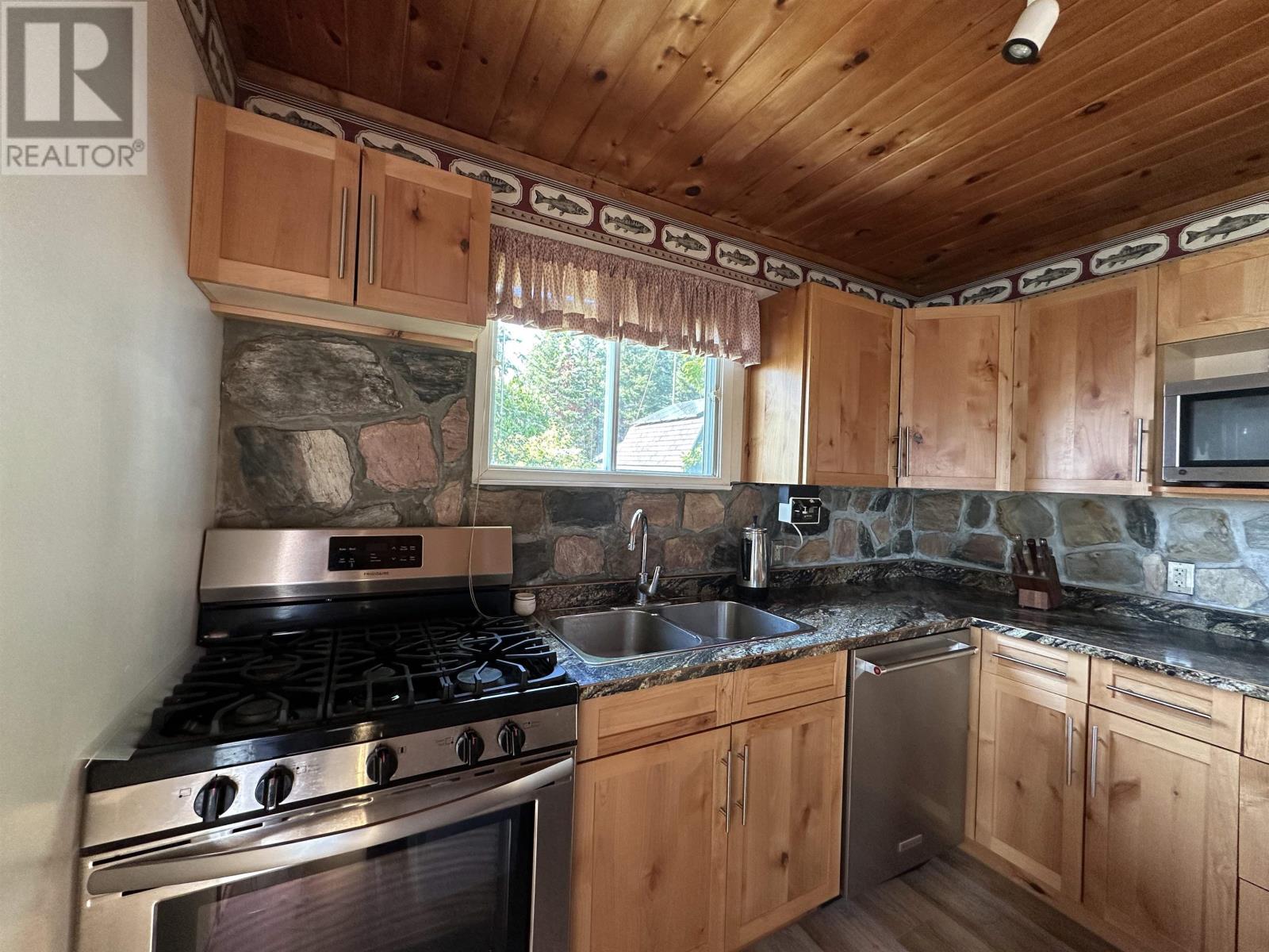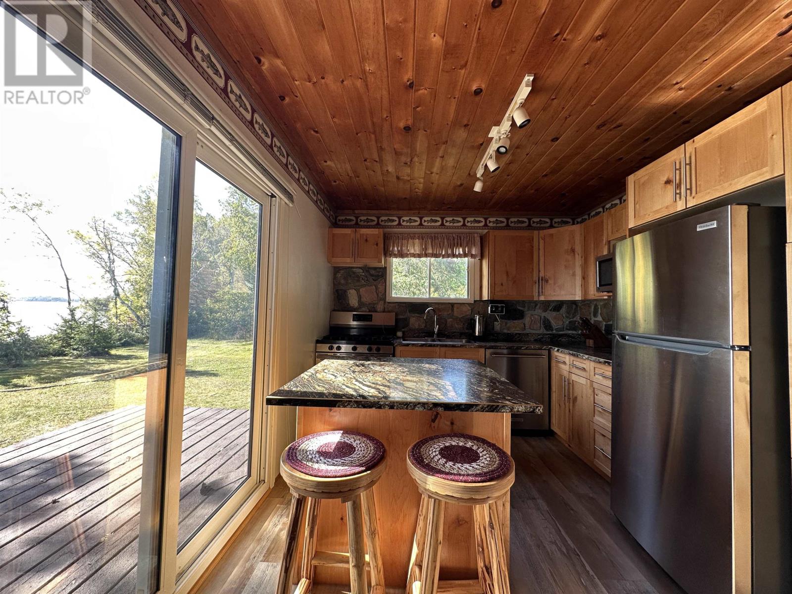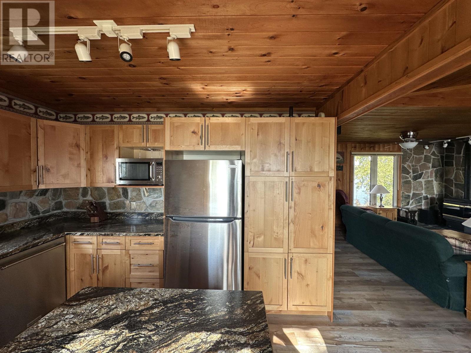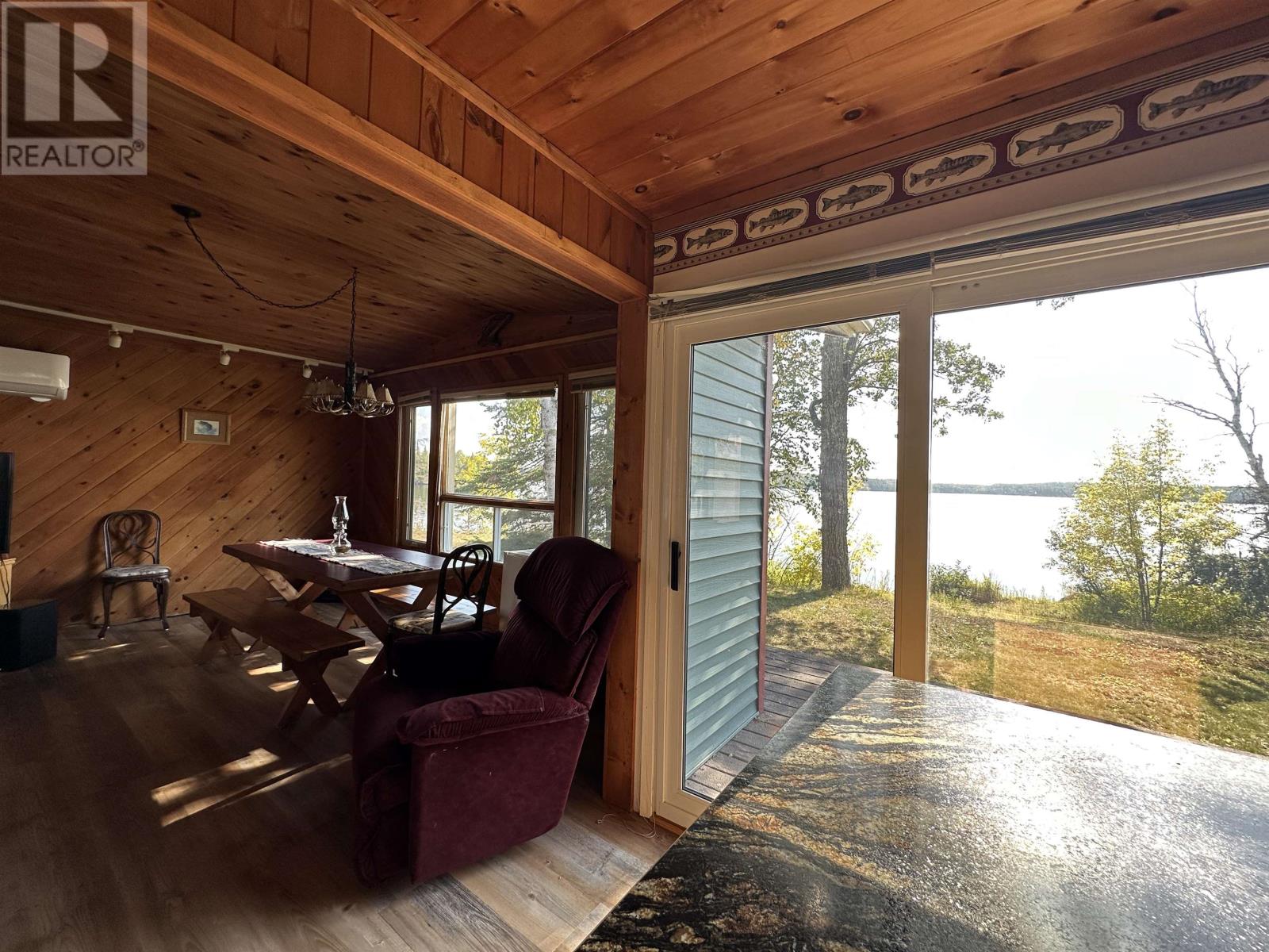 Surrounded by water on nearly all sides, this rare offering boasts 1,161 feet of frontage with almost 360° of waterfront views. Set on 2.1 acres of titled land in unorganized territory, this is the ultimate private retreat on the desirable east side of Ptarmigan Bay. Enjoy the convenience of a new sheltered dock, framed by sandy beaches on both sides, perfect for swimming, boating, and lakeside relaxation. The cottage itself is thoughtfully designed and well maintained, sitting on a poured concrete foundation with newer siding, windows and steel roof, ensuring low maintenance for years to come. Modern off-grid living is made easy with a sophisticated solar power system, featuring multiple solar panels and wind turbines, delivering enough energy for everyday comforts including heat, air conditioning, fridge, microwave, and more. This unique point property offers unmatched privacy, breathtaking views, and everything you need to start enjoying lake life right away. (id:4069)