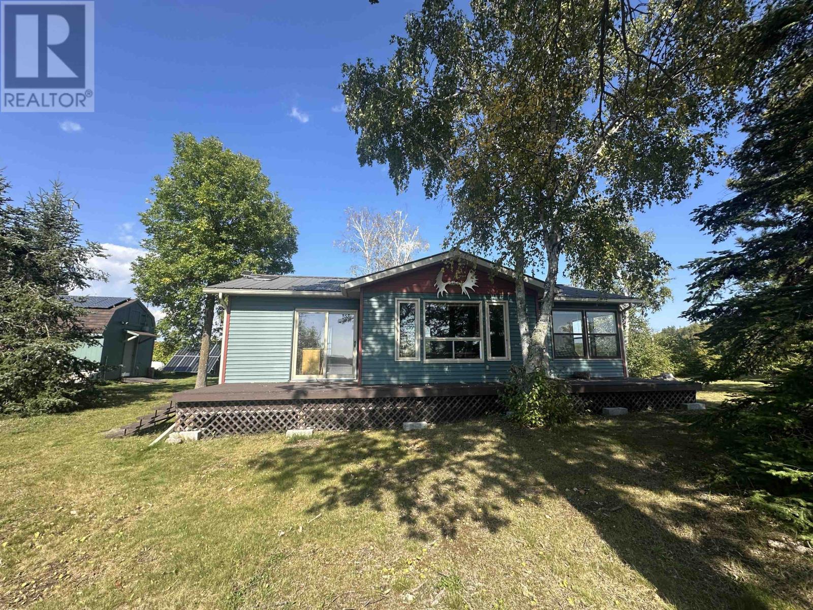 Surrounded by water on nearly all sides, this rare offering boasts 1,161 feet of frontage with almost 360° of waterfront views. Set on 2.1 acres of titled land in unorganized territory, this is the ultimate private retreat on the desirable east side of Ptarmigan Bay. Enjoy the convenience of a new sheltered dock, framed by sandy beaches on both sides, perfect for swimming, boating, and lakeside relaxation. The cottage itself is thoughtfully designed and well maintained, sitting on a poured concrete foundation with newer siding, windows and steel roof, ensuring low maintenance for years to come. Modern off-grid living is made easy with a sophisticated solar power system, featuring multiple solar panels and wind turbines, delivering enough energy for everyday comforts including heat, air conditioning, fridge, microwave, and more. This unique point property offers unmatched privacy, breathtaking views, and everything you need to start enjoying lake life right away. (id:4069)